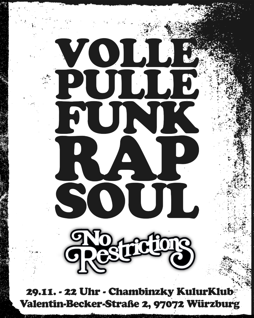 Ob von James Brown, Stevie Wonder, Prince, Eddie Floyd oder auch Gruppen wie Temptations, Meters, Sly & the Family Stone oder Tower of Power, - NO RESTRICTIONS schicken euch mit funky Bläser Sound zurück in die Zeit, als Helmut Schmidt in weißen Tennissocken unser Land regierte, Weine mit Frostschutzmitteln gesüßt wurden und James Brown noch Schulterpolster trug..