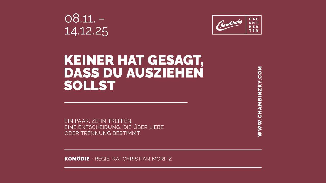 „Keiner hat gesagt, dass du ausziehen sollst“ ist Theater, das mitten aus dem Leben spricht – voller Tempo, voller Witz, voller Wahrhaftigkeit. Ein Stück, das Sie zum Lachen bringt, zum Nachdenken und vielleicht sogar dazu, die eigene Beziehung mit neuen Augen zu betrachten.